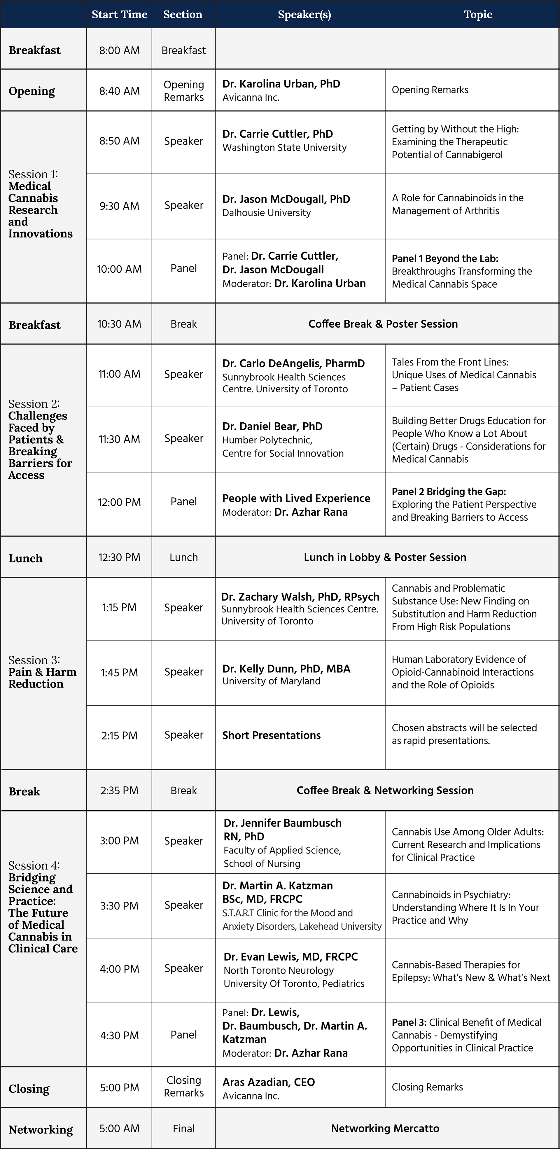 Avicanna’s 6th Medical Symposium is a 2-day clinical education conference focused on the practical use of cannabinoid-based medicine in patient care.